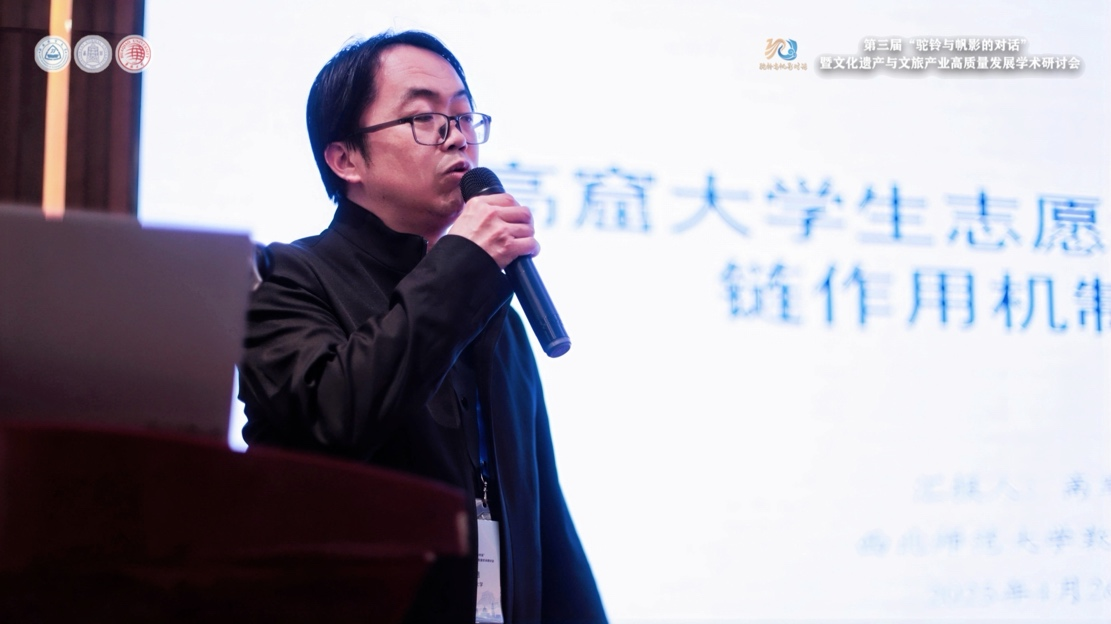 主旨报告(下半场)共有7位专家进行分享,由西北师范大学 瓜子tv 院长梁旺兵主持,分享专家分别是中南财经政法大学旅游研究院院长邓爱民,《旅游学刊》执行主编、教授张凌云,南开大学旅游与服务学院院长徐虹,东北财经大学萨里国际学院院长史达,海南大学国际旅游与公共管理学院党委书记郭强,华侨大学 瓜子tv 院长谢朝武,瓜子tv 院长孙振杰分别进行关于《科技赋能遗产新生,数智擘画文旅蓝图》、《北京中轴线遗产旅游开发利用与保护》、《文化旅游赋能乡村振兴的路径与模式》、《生成式AI与旅游管理范式转型:教育体系重构与职业能力重塑》、《南海深远海文物遗产资源保护与旅游开发》《旅游地非物质文化遗产的时尚传播》、《长城文化遗产栖息地的适应性演进》等汇报。