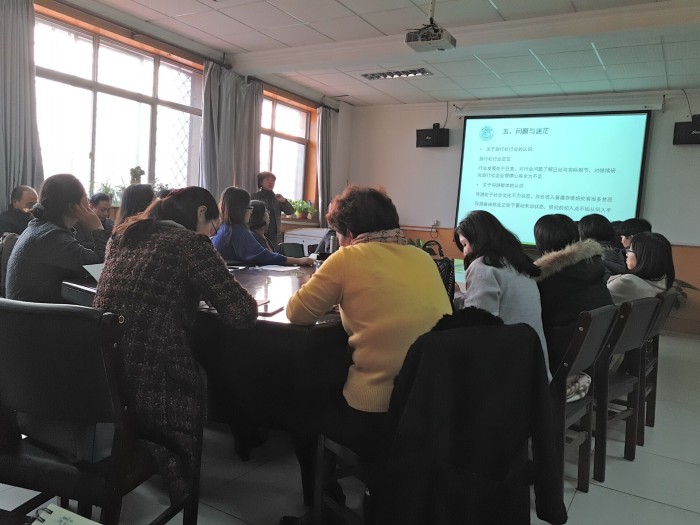高宏教授以完成的博士论文主体内容和研究过程为主线展开,分享了论文选题背景、依据、研究思路、研究方法、创新点、写作过程中的收获以及未来研究点,并提出一些值得大家共同思考的学术困惑问题,与会老师展开了积极的讨论,争相发表各自的观点,气氛热烈浓厚。最后,祁院长指出,开展学术研究,站位要高远,思考要深入,理论要打通,学科要融合。
