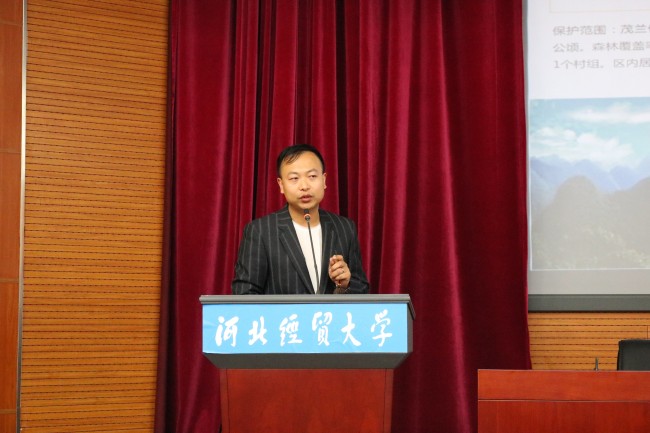 颁奖结束后,杨志全分享《荔波漳江 一江两岸》的项目策划,他具体介绍了项目地概况和资源,表示希望从参会学生当中征集到优秀的项目形象定位和宣传语。分享最后,杨志全鼓励学生在校期间,要时刻关注国家政策,了解市场热点,多“走出去”看一看,为自己将来的发展打下坚实基础,争做旅游行业的佼佼者。
