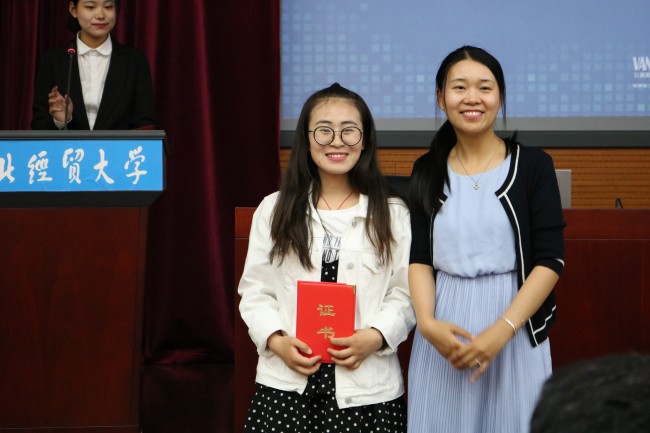 本次参加评选的六名候选人为:冯晨曦、唐琪、石佳玉、姜美冉、鲍印超、王慧敏。会上,六名候选人分别就各自实习工作进行了工作总结及经历分享,为16级、17级学生提供了诸多宝贵经验。经过系列的展示与评选,冯晨曦以优异成绩获得一等奖,颁奖嘉宾为获奖选手颁发获奖证书及奖杯并合影留念。