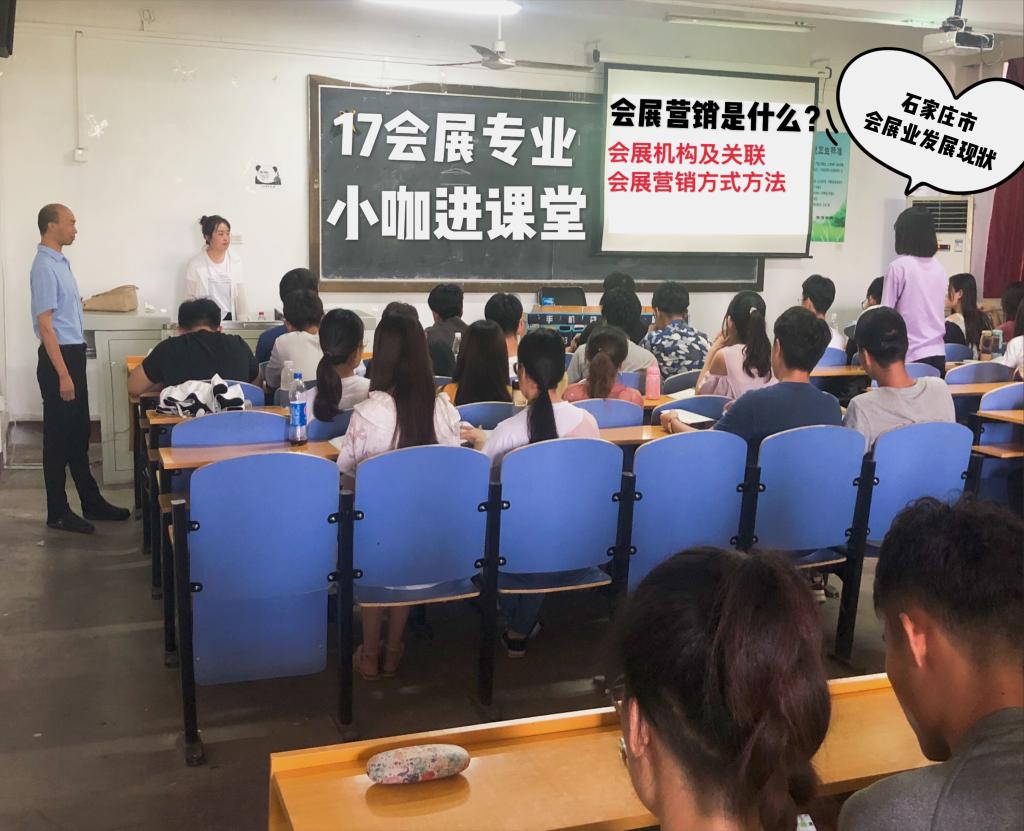 2017级会展经济与管理专业在206教室进行了会展营销的“小咖进课堂”教学活动,邀请石家庄国际会展中心会议销售代表刘丹丹担任主讲。
