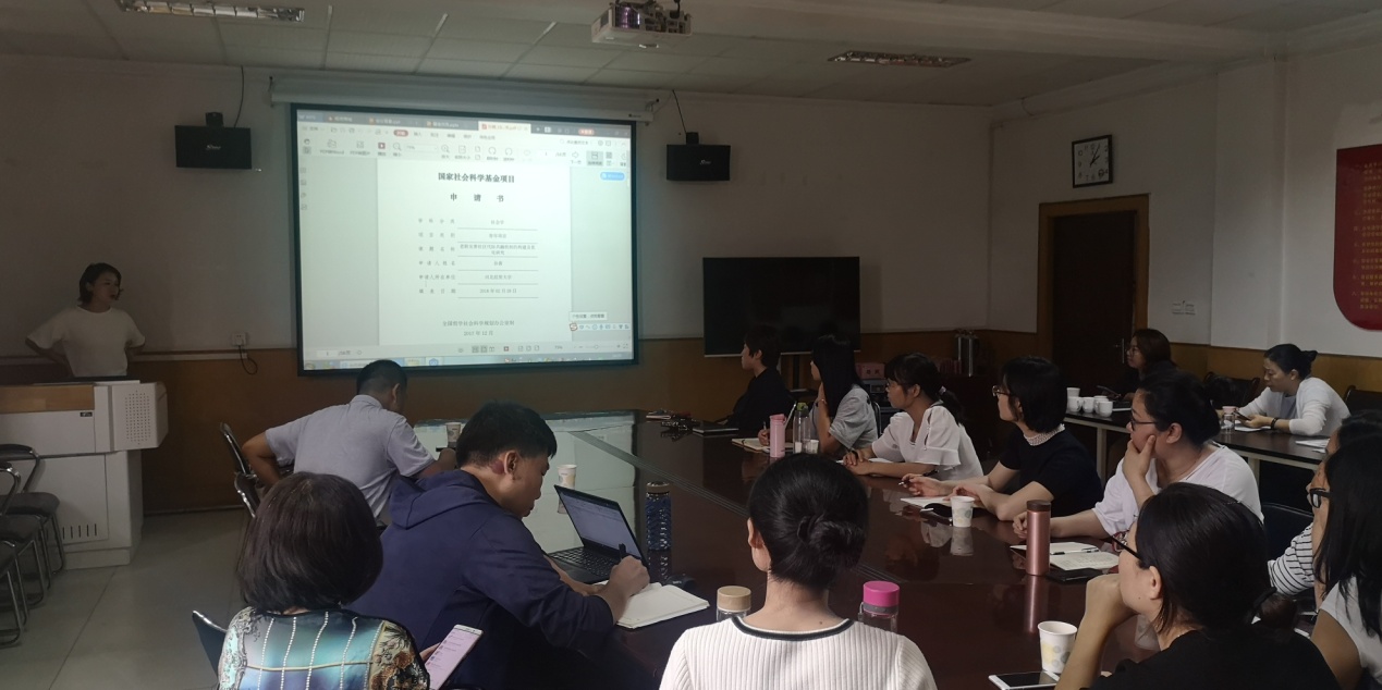 孙茜博士以自己的国家社科基金课题申报书为依托,向大家介绍了国家社科基金申报的经验和技巧,并结合自己的研究经验向大家介绍了不同学科的研究热点追踪方法,并与参会教师一起探讨了社会学和旅游学的结合点。