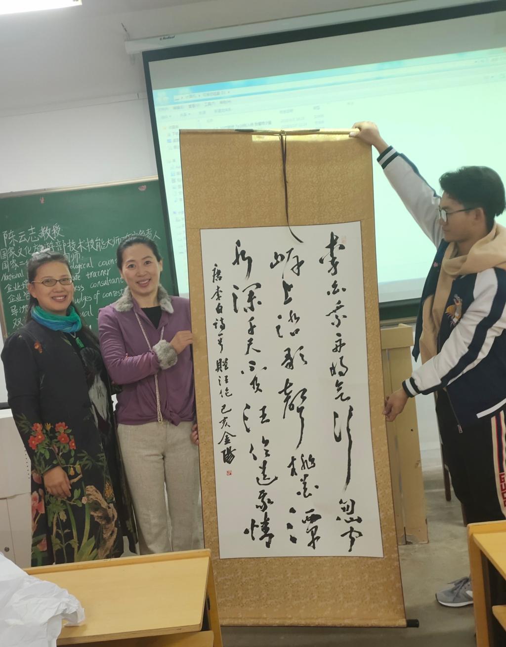 此次讲座的举办非常成功,进一步增强了旅游管理专业学生的专业认同感,拓宽了学生的职业视野。我们李老师也向陈云志老师赠送了自己专门为其创作的书法作品。