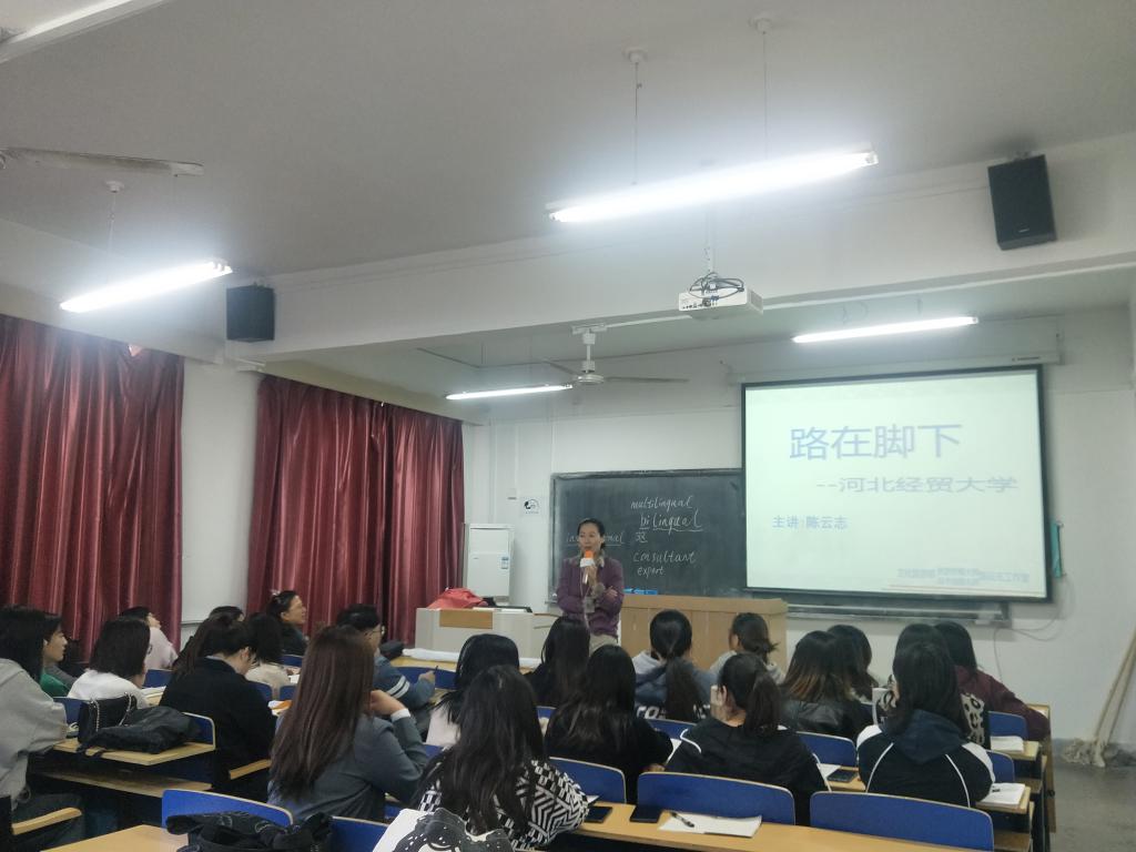其次,陈老师分享了她的一些难忘的工作经历和成长历程。特别是作援藏导游的那段艰辛历程,从她的身上,我们看到了那种坚韧坚持与付出。她的经历,就是一个精彩的励志故事。让我们深刻的认识到了“成功都是设计出来的”。作为大学生的我们应该勇于尝试,找到自己的目标和方向,踏踏实实坚持下去。因为我们还年轻不怕失败,年轻就是资本。同时我们也更加明确了旅游业的前景与未来,路就在我们的脚下。