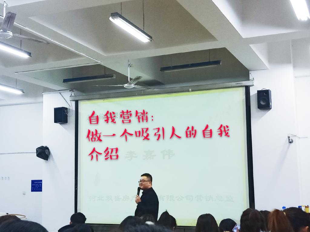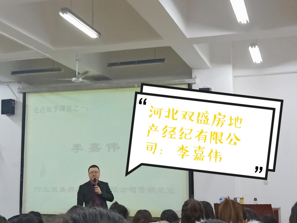 邀请河北双盛房产经纪有限公司营销总监李嘉伟于北五教二教室做了房地产经营交流会。本次课程由 瓜子tv