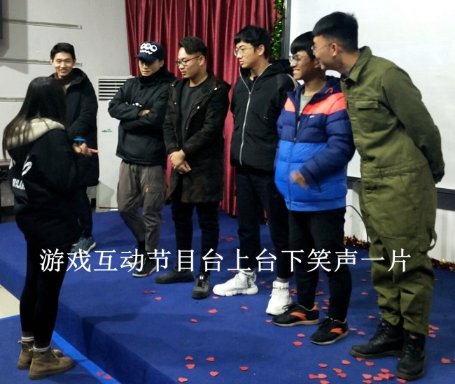 随后,元旦联欢以歌声作为开始曲,动听的歌声给全体同学带来了美的享受;有趣的游戏让同学们得到了身心的放松;活力的舞姿将晚会的气氛推向了高潮;惊喜频出的脱口秀节目妙语连珠、语惊四座。