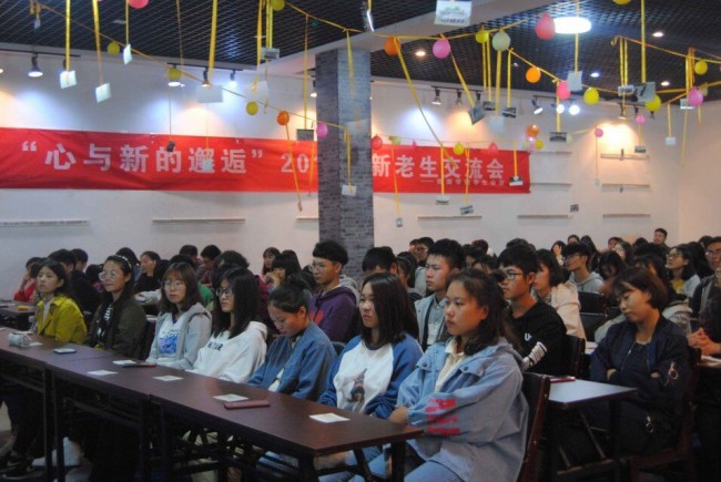 在会展多功能厅举办了以“心与新的邂逅”为主题的新老生交流会。此次交流会邀请了高年级各专业共6名优秀学生为新生答疑解惑,2018级200余名新生代表参加交流会。