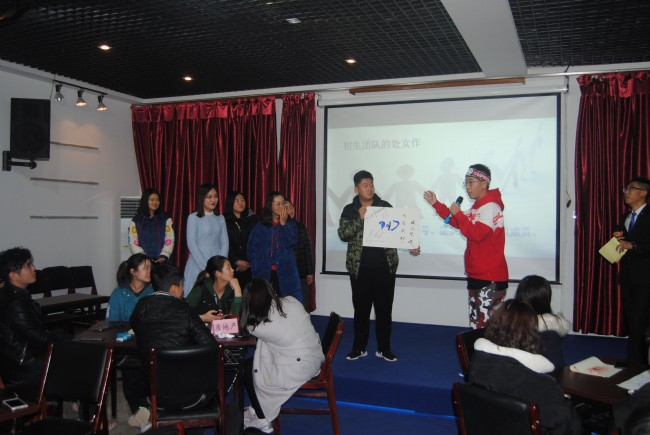 此次素质拓展训练分为破冰之旅、青马分享、拓展训练等三个环节。破冰之旅环节,各代表队通过头脑风暴,集思广益设计具有特色的团队名称、团队口号并上台展示团队风采,建立了团队意识和情谊;在青马分享环节,参加学校第三期青马班的学员徐欣依、王雪聪、陈磊从理论学习、社会实践、志愿服务、创业培训等方面分享了青马之行的感受与收获,深情诠释了“一入青马,受益终生”的箴言,全场观众受益匪浅;最后的素质拓展训练环节,各代表队凝成一股绳,参加