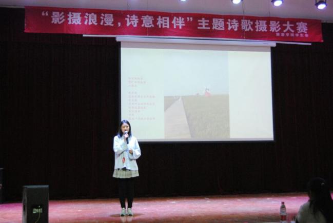 此次活动初赛以现场展示和网络投票的方式进行,共有16名选手进入决赛。决赛现场,参赛选手们各显其能,以ppt展示来讲述旅行中的故事,以歌曲演唱或诗朗诵的方式来展示自己的才艺。选手们或深情演绎,或幽默风趣,表达旅行中的见闻,分享人生感悟。王映同学以“逝去的青春”为题,和同学们分享了她边读书边旅行的故事,引发现场观众共鸣。比赛穿插有文艺表演和游戏环节,带动了现场气氛。最终王映获得了此次摄影大赛总冠军。