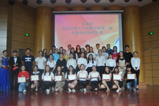 在音乐厅举办第一届“弘基杯”旅游创意策划大赛决赛。学院党委书记刘风长、院长高宏出席并担任颁奖嘉宾,张家口弘基实业集团有限责任公司副总裁赵秉印、河北拓朴华章旅游规划设计有限公司院长樊燕萍、河北省科学院地理所旅游室主任、副研究员徐宁、河北新纳瑞旅游规划设计研究院院长张欣、河北和智旅游规划设计有限公司常务副总任聪应邀担任评委。