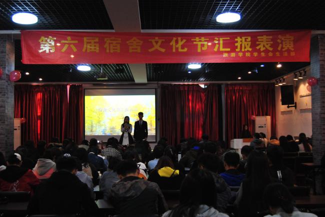 在会展多功能厅举办第六届宿舍文化节闭幕式暨颁奖仪式,2017级辅导员和学生参加闭幕式。