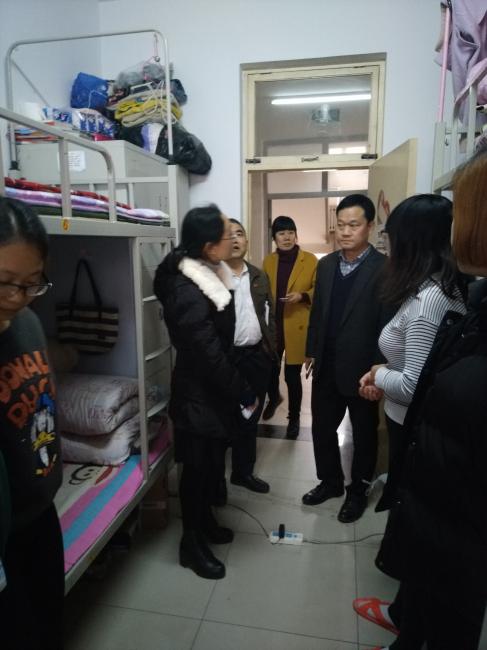 党委书记刘风长,副书记耿会清、全体辅导员和学生会干部组成检查小组,对学生宿舍进行安全卫生检查。