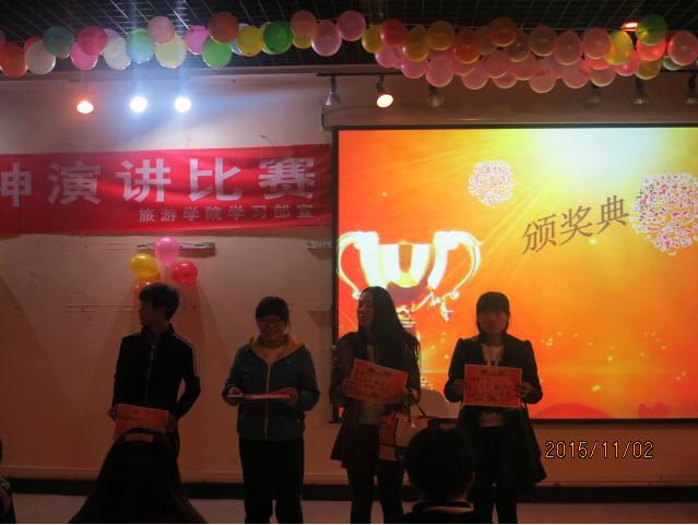 比赛分为三个环节:开门见山、即兴演讲、评委点评。参赛选手紧扣演讲主题,用生动的事例,鲜活的语言,慷慨激昂地诠释红色精神。声情并茂的演讲牵动了在场每一位观众的心弦,博得一阵阵掌声。选手演讲结束后,演讲协会会长刘金伟进行了深刻的点评,对选手的演讲给予了鼓励和肯定,并给出了指导意见,建议选手们注意演讲的语调和语速,增强感情色彩,以引起观众共鸣。经过激烈的角逐与公平的评判,15级旅游管理高本一班的王亚军同学以她极具感染力的演讲获得了本次比赛的冠军。