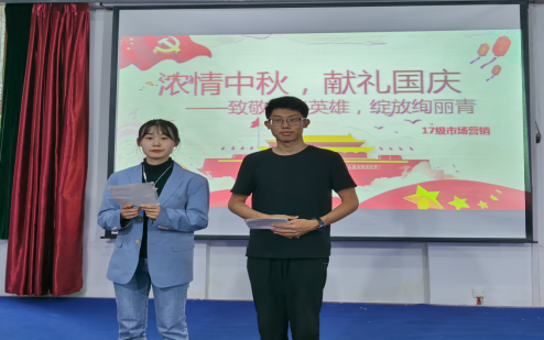 2017级市场营销专业于会展实训室举办“浓情中秋,献礼国庆,绽放绚丽青春”主题团日活动,又是中秋月圆时,共祝伟大祖国繁荣昌盛。本次活动由团支部宣传委员张力威主持,17级市场营销专业班主任王锦旺出席,全体学生参加。