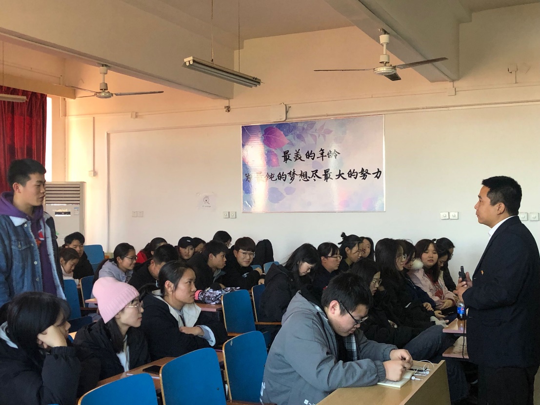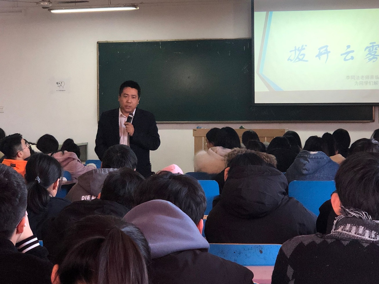 李同法老师宣讲了习近平新时代中国特色社会主义思想和十九届四中全会精神,并结合《习近平谈治国理政》《习近平新时代中国特色社会主义思想学习纲要》等重要著作,对广大学生的思想和行动统一到以习近平同志为核心的党中央的各项决策进行落实。
