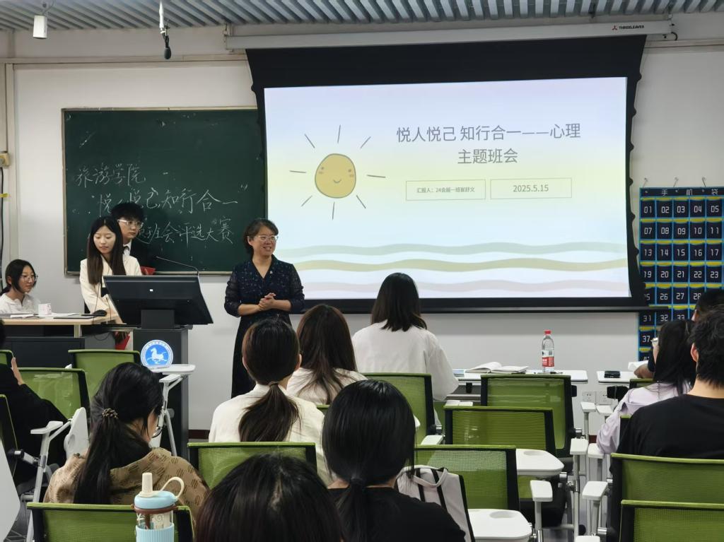 各班心理委员结合班会活动,深入浅出地讲解了“悦人悦己”的内涵——既要学会关爱他人,也要懂得悦纳自我;而“知行合一”则强调将心理健康知识转化为实际行动,做到情绪管理、人际交往与自我成长的和谐统一。