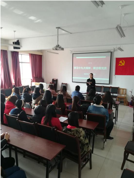 在三楼会议室开展以“学习十九大精神,做合格党员”为主题的专题党课。会议由学生党支部书记池晶主持,全体在校学生党员、入党积极分子代表参加会议。
