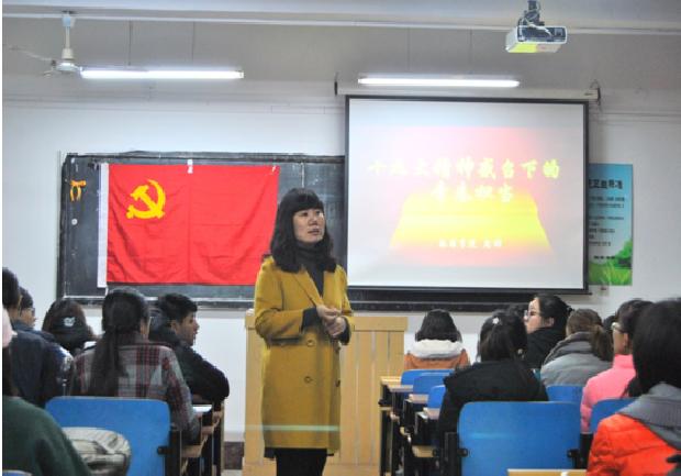 在学院306教室举办以“十九大精神感召下的青春担当”为主题的宣讲会,学院学工办主任周娜主讲,全体学生党员、入党积极分子及主要学生干部参加。
