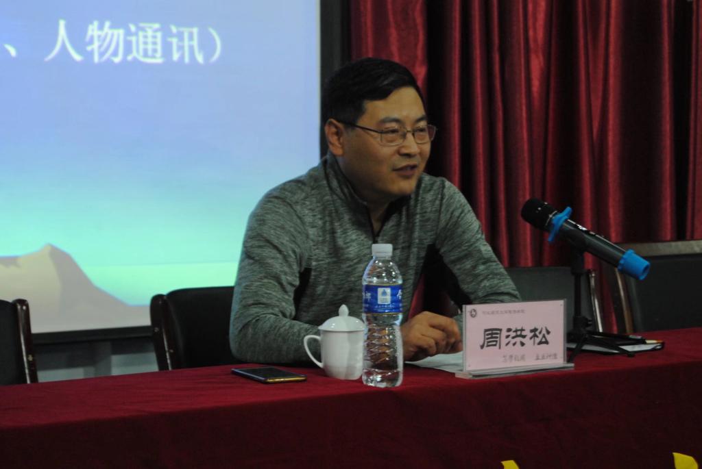 周洪松以“教育故事的撰写”为主题,从积累的重要性讲起。他指出:诗言志,歌咏言,文以载道。道是我们写好文章的基础,是一种精神,是一面理想主义的旗帜,经典作品是学习的活水源头,是可以借鉴的美篇范本。同时他也强调要增强“四力”来加深自身涵养。他结合自身对新闻写作的理解,从脚力是基础、眼力是关键、脑力是总指挥、笔力是终端等四个方面为同学们进行了详细讲解。周洪松以自己亲历故事,自撰新闻作品等为例指出同学们在新闻写作过程中可能存在的问题,并针对其进行了深入剖析和提出相关的解决方法,他精辟独到的见解赢得了在场人员的阵阵掌声。