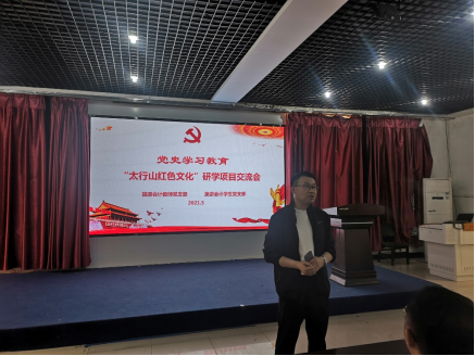 举办的党史学习教育暨“太行山红色文化”研学项目交流会。学院党委书记董爱民、教师党支部书记孙振杰、马克思主义学院支部书记及教师代表、旅游管理系全体教师和部分学生党员、入党积极分子参与活动。