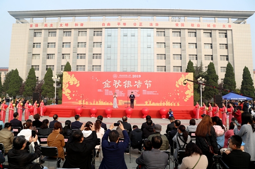 第三届金秋银杏节在一教广场前盛大开幕。校党委书记董兆伟,校党委副书记陈亮,校领导杨金田、高晓峰、和志强、张秀山、程瑞芳出席。各部门、各学院负责人,离退休老干部,以及师生、游客近千人参加开幕仪式。