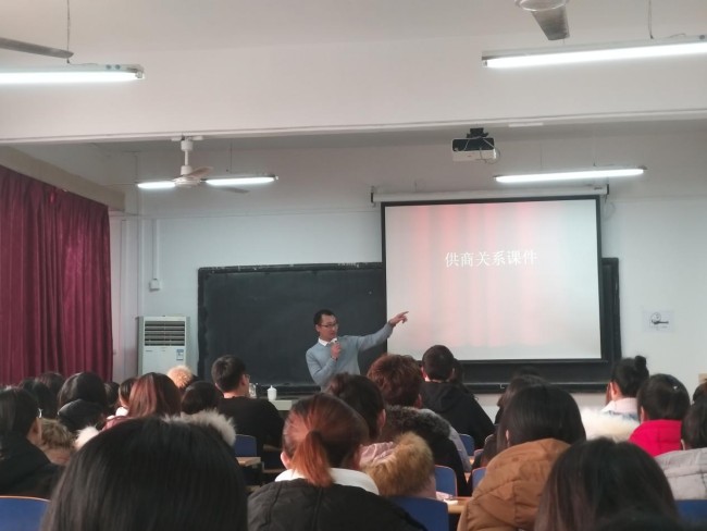 韩经理在简要介绍阿芙精油高端品牌及其产品体系的基础上,重点阐述了当前高端品牌渠道的建设现状,电子商务和网络化发展带来的挑战,并分析了未来整体网络构建的趋势。他结合自己的专业理论知识和实践成长经历,鼓励同学们要多付出、多反思、多体验,戒骄戒躁,脚踏实地,刻苦钻研,用未来的结果去证明一切,用结果去说话!