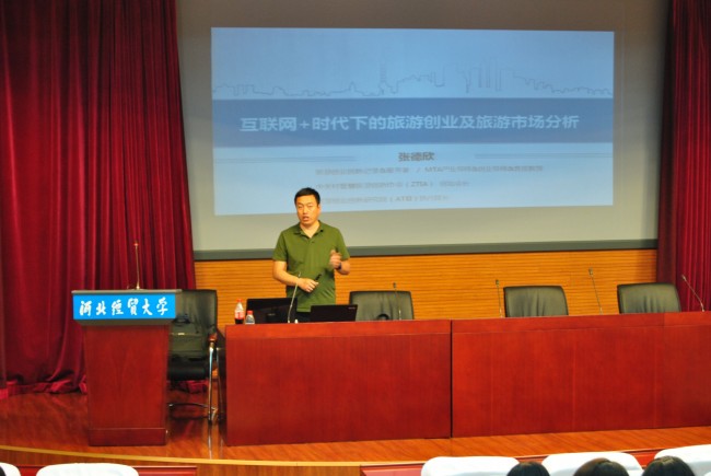 张得欣院长阐述了讲述了互联网+和互联网+时代的六大特征,论证了"互联网+时代"模式中的旅游大势。另外张院长还从团队人员的组建和创业中的重要因素等方面对中国旅游的创新创业进行了分析,讲座的及时性、实用性和前沿性收到同学们强烈好评。