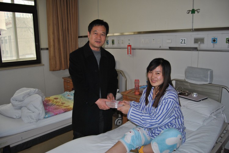 耿会清在医院细心询问了张霞的术前情况,希望张霞安心养病,常怀感恩之心,用实际行动来回报学校和社会的关爱。