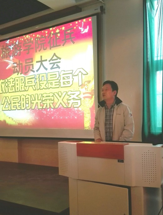2016年征兵动员大会在会展实训室召开。学院党委副书记耿会清出席会议并讲话,学院全体男生及各年级辅导员参加大会。此次动员大会由学院负责征兵工作的李同法老师主持。