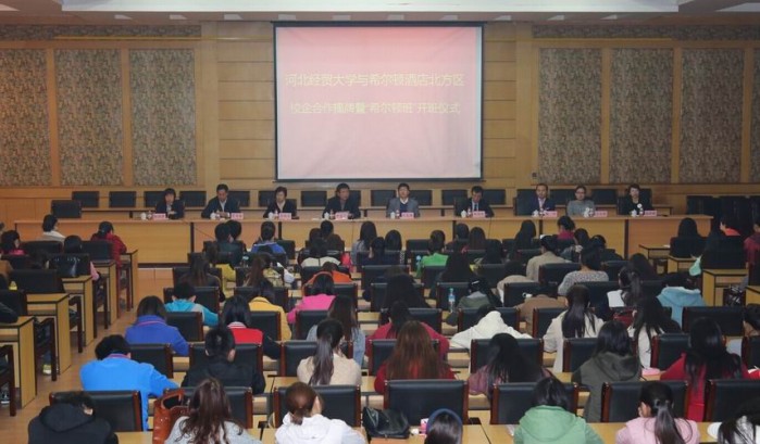与希尔顿酒店北方区校企合作揭牌暨“希尔顿班”开班仪式在学校会议中心举行。校党委副书记、校长纪良纲,校党委常委、副校长申富平出席,教务处处长李桂琴,石家庄希尔顿酒店、北京机场希尔顿酒店、天津生态城世茂希尔顿酒店等人员及 瓜子tv