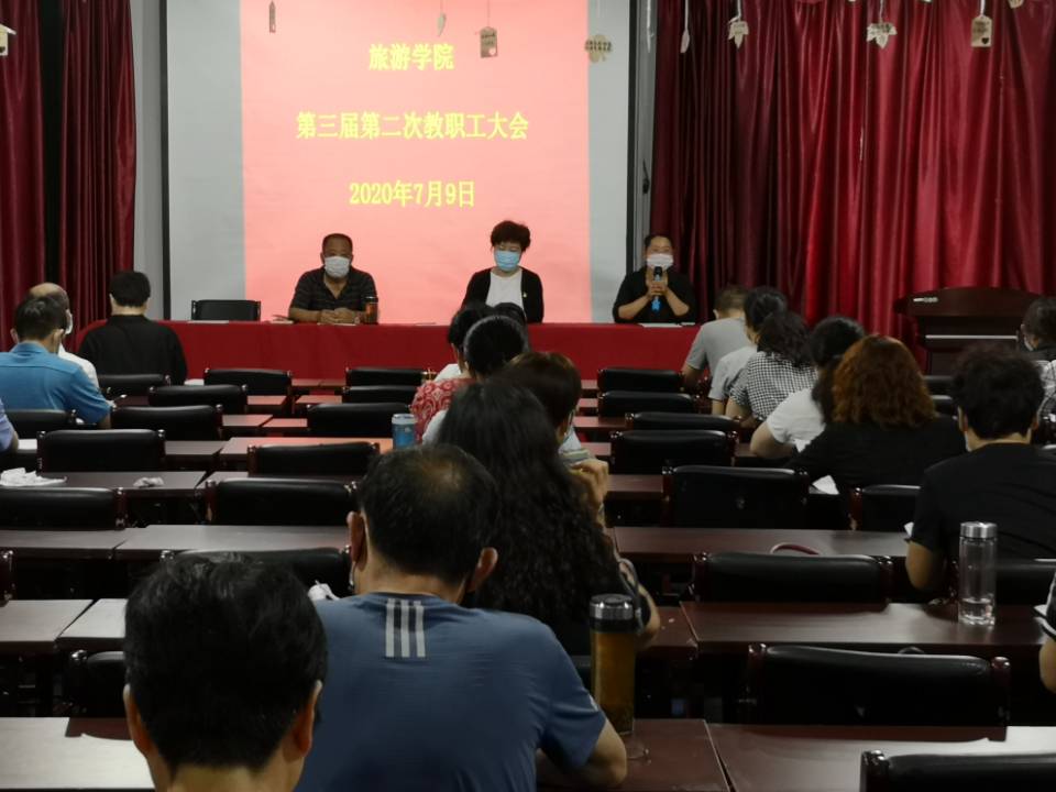 在会展多功能厅召开第三届第二次教职工大会,学院党政领导班子、全体教职工参加会议。院党委副书记王翠改主持会议。