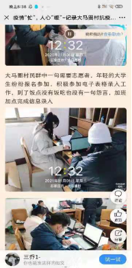疫情就是命令,防控就是责任。“作为一名中共预备党员,我有责任为疫情防控献自己的力量”,她主动请缨,参与到家乡疫情防控中,在村口设卡拦截车辆测温,拒绝外来人员进入;挨家挨户帮助村民申领邯郸电子健康卡,辅助村委会做好核酸检测前期准备工作;帮助村委会调查返乡人员情况。“联防联控,群防群控,相信在大家的共同努力下,一定能够战胜疫情”。