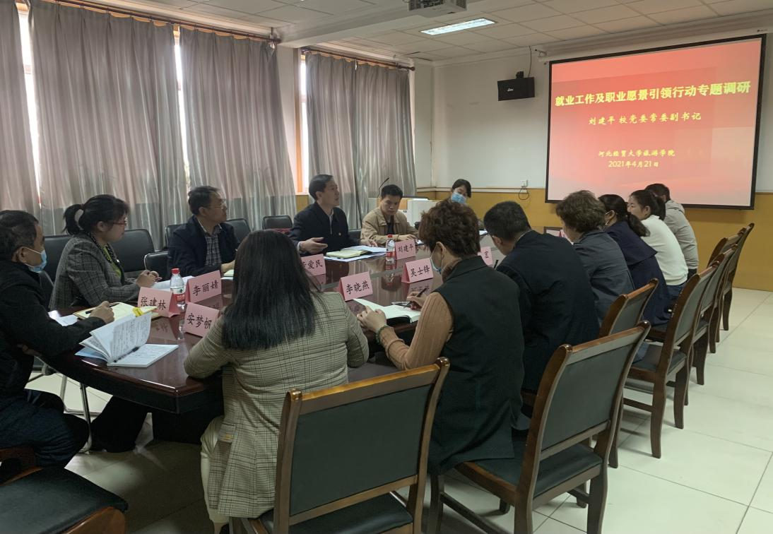 开展就业工作及职业愿景引领行动专题调研,就业指导中心负责人、旅游学院领导班子及毕业班辅导员、就业工作联络员参加座谈。