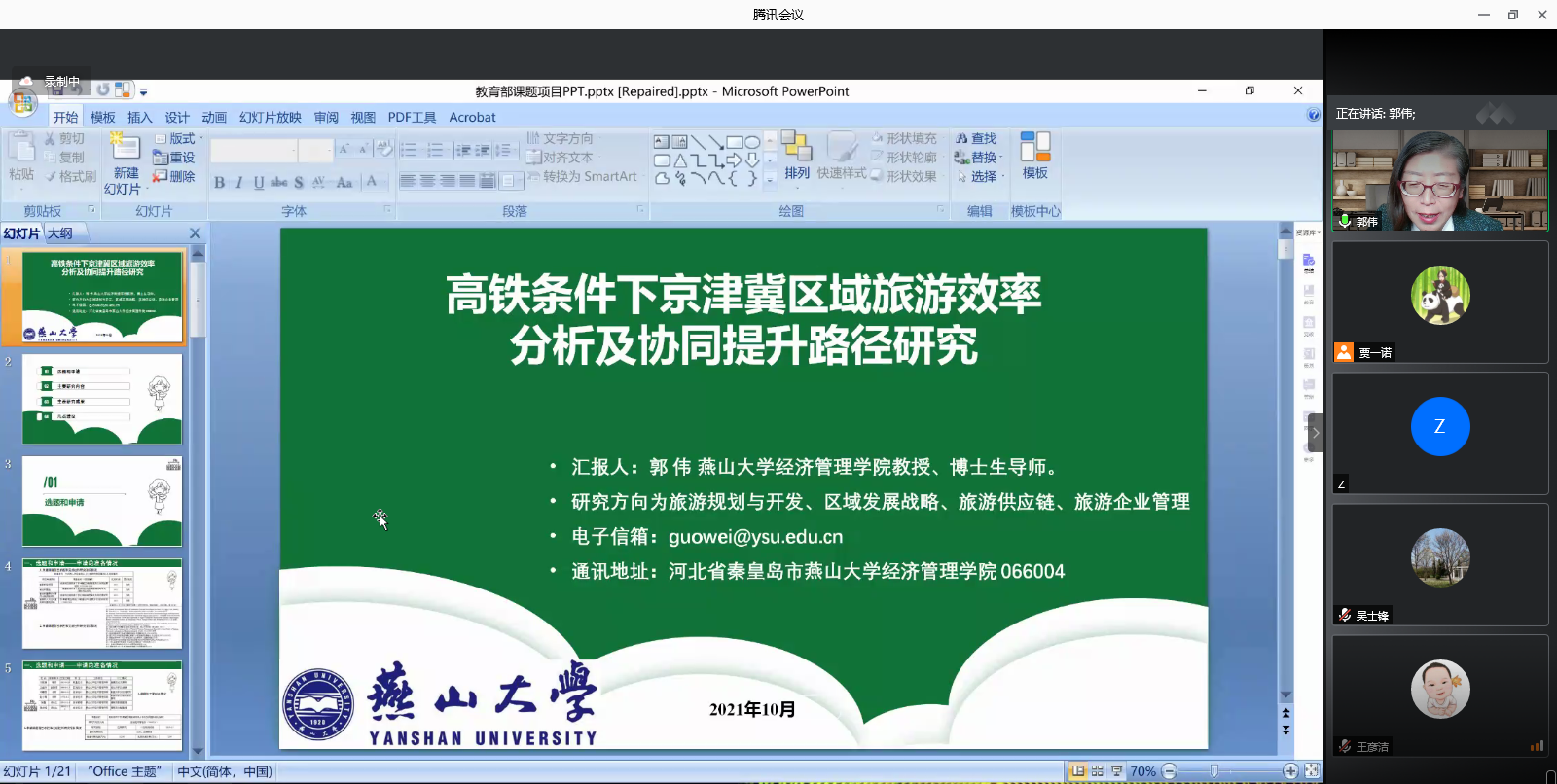 邀请燕山大学经济管理学院教授、博士生导师郭伟通过腾讯会议进行了题为“高铁条件下京津冀区域旅游效率分析及协同提升路径研究”的学术讲座。讲座由 瓜子tv