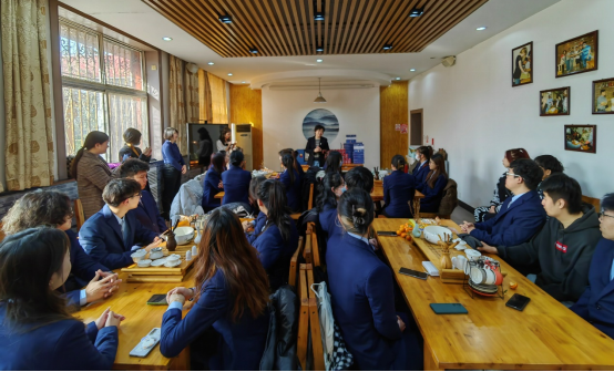 紫藤茶室正式举办开班典礼。首批华住班27名同学全体参加,学院院长高宏、酒店系副主任韩金辉、酒店系教师贾一诺、华住集团河北省区人事经理吴辉峰、华北区校企合作部经理刘浩、员工服务中心经理张梦和侯洁出席本次活动,开班典礼由企业班主任张梦经理主持。