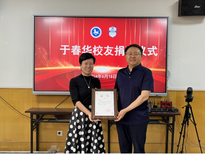 捐赠电子大屏1台,学院党委书记董爱民为于春华校友颁发捐赠证书。