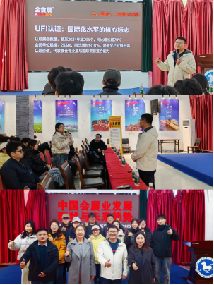 在互动环节,王海宁分享了自己从营销专业学习到会展行业创业的成长历程。其公司主办的糖果展与全食展均已获得UFI国际认证,彰显了项目的专业水准与国际影响力。针对同学们关注的就业与能力培养问题,他强调了“一分钟精准表达观点”的能力价值,指出差异化竞争不仅是会展项目成功的关键,也是个人核心竞争力构建的方向。此外,他还发布了全食展的岗位招聘与实习生招募信息,引发同学们广泛兴趣。讲座结束后,现场气氛热烈,学生踊跃交流,表达对岗位的关注与参与意愿。