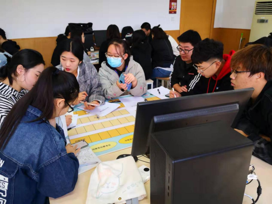 在沙盘模拟训练的开始,于老师首先对于沙盘规则进行详细讲解,沙盘模拟各职能中心涵盖了酒店运营的许多关键环节,如创建酒店、品牌建设、市场调查,营销模拟、运营规则等等。然后将学生们分为A、B、C、D、E五个小组,并进行企业品牌建设、设计名称、logo和广告宣言,通过学生参与到沙盘载体模拟经营、讲师评析、学生感悟等一系列的实验环节,每一步骤填写个人的表格,融和理论实践与一体、集角色扮演与岗位体验于一身的设计思想,使学生们在分析市场、制定战略、营销策划、组织生产、财务管理等一系列活动中参悟科学的管理规律,同时也对酒店资源的管理过程有一个深刻而实际的体验。