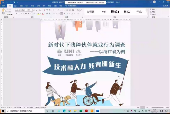 张伟博士用一个短视频引入主题,以自己带队学生的参赛作品《新时代下残障伙伴就业行为调查——以浙江省为例》为例,梳理了调查研究过程中的相关步骤:绪论、问卷设计、数据检验、引导对策、期望总结。并对问卷设计、数据检验这两方面进行了着重讲解。