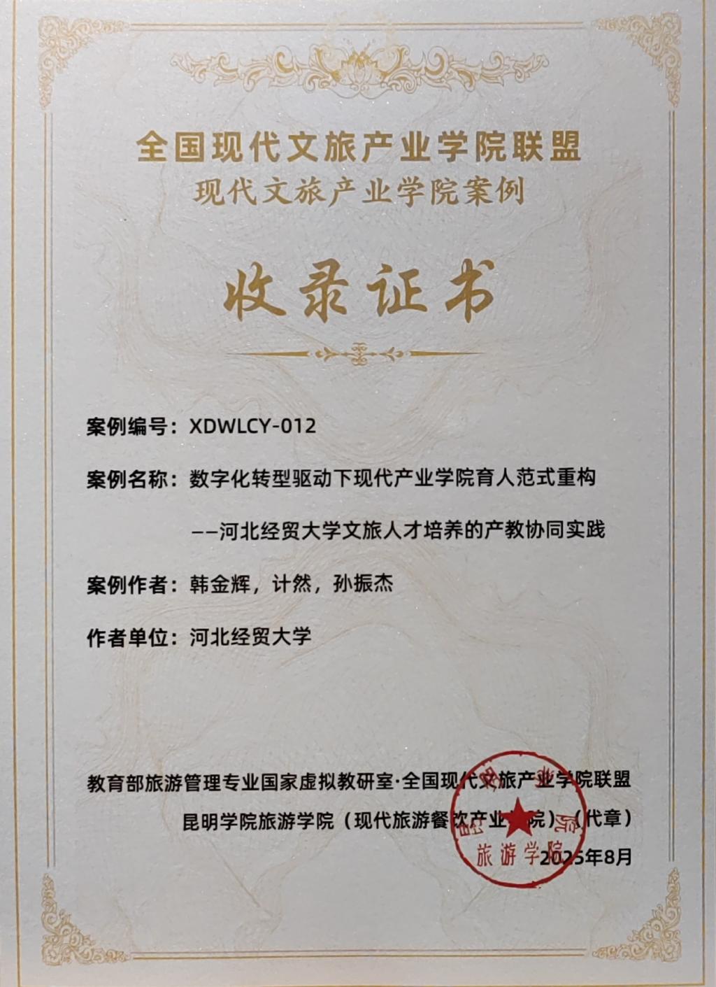 文旅人才培养的产教协同实践”获全国现代文旅产业学院联盟现代文旅产业学院案例。
