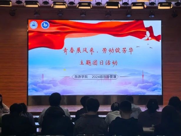 2024级旅游管理专业于5月23日在大学生活动中心3号厅开展“青春展风采,劳动绽芳华”主题团日活动 。活动以多元形式引导学生践行劳动精神,诠释劳动价值。