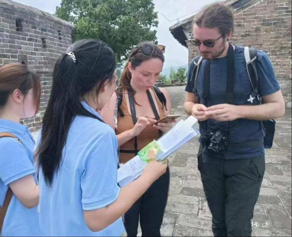“旅享”社会服务团长城文化小分队金山岭方向聚焦文化传承、业态创新、居民参与三大核心驱动力,深入长城景区及脚下的花楼沟村、古城川村等沿线村镇,通过发放问卷、访谈等方式,与国内外游客、居民、经营者和基层干部广泛交流,深入了解金山岭长城区域文化旅游发展现状、挑战与未来潜力,领略当地村民和经营者的智慧与担当,为金山岭长城的可持续发展提供可借鉴的策略,探索创新赋能乡村振兴的可行路径。